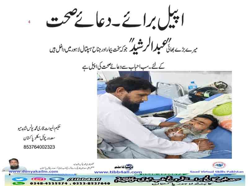 میرے بڑے بھائی “عبد الرشید”جو کہ سخت بیمار اور جناح ہسپتال لاہور میں داخل ہیں