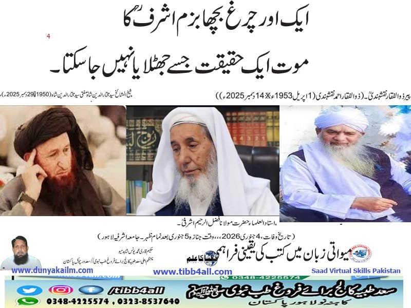 دسمبر2025 اور4 جنوری 2026 میں تین بڑے علمی و روحانی آفتاب یکے بعد دیگرے غروب ہوئے۔ایک عہد تمام ہوا۔بڑوں نے رخت سفر آخرت باندھا۔چھوٹے اب بڑے ہونے چلے۔