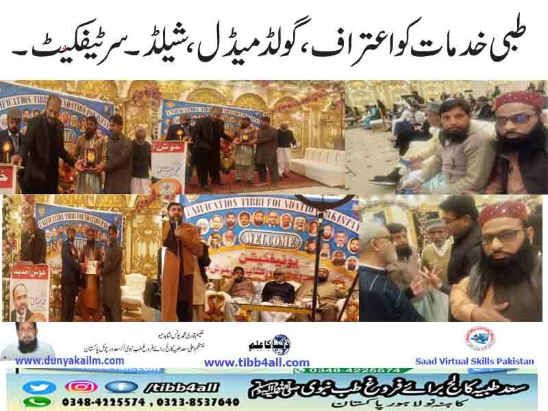طبی خدمات کو اعتراف ،گولڈ میڈل،شیلڈ۔سرٹیفکیٹ۔