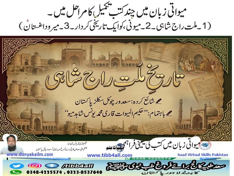 میواتی ثقافت و تاریخ پے جو مواد بھی ملے واکی اشاعت ہمارا (سعد ورچوئل سکلز پاکستان//سعد طبیہ کالج )منصوبہ کو حصہ ہے۔