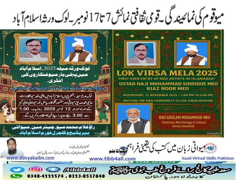 میو قوم کی نمائیندگی۔قومی ثقافتی نمائش7تا17 نومبر۔لوک ورثہ اسلام آباد